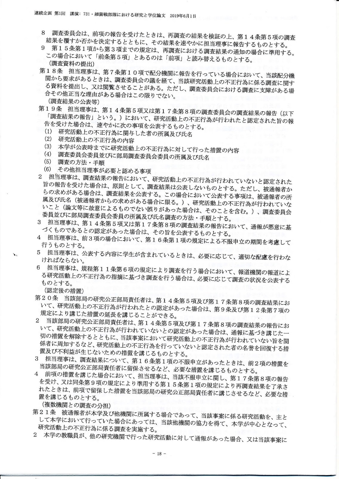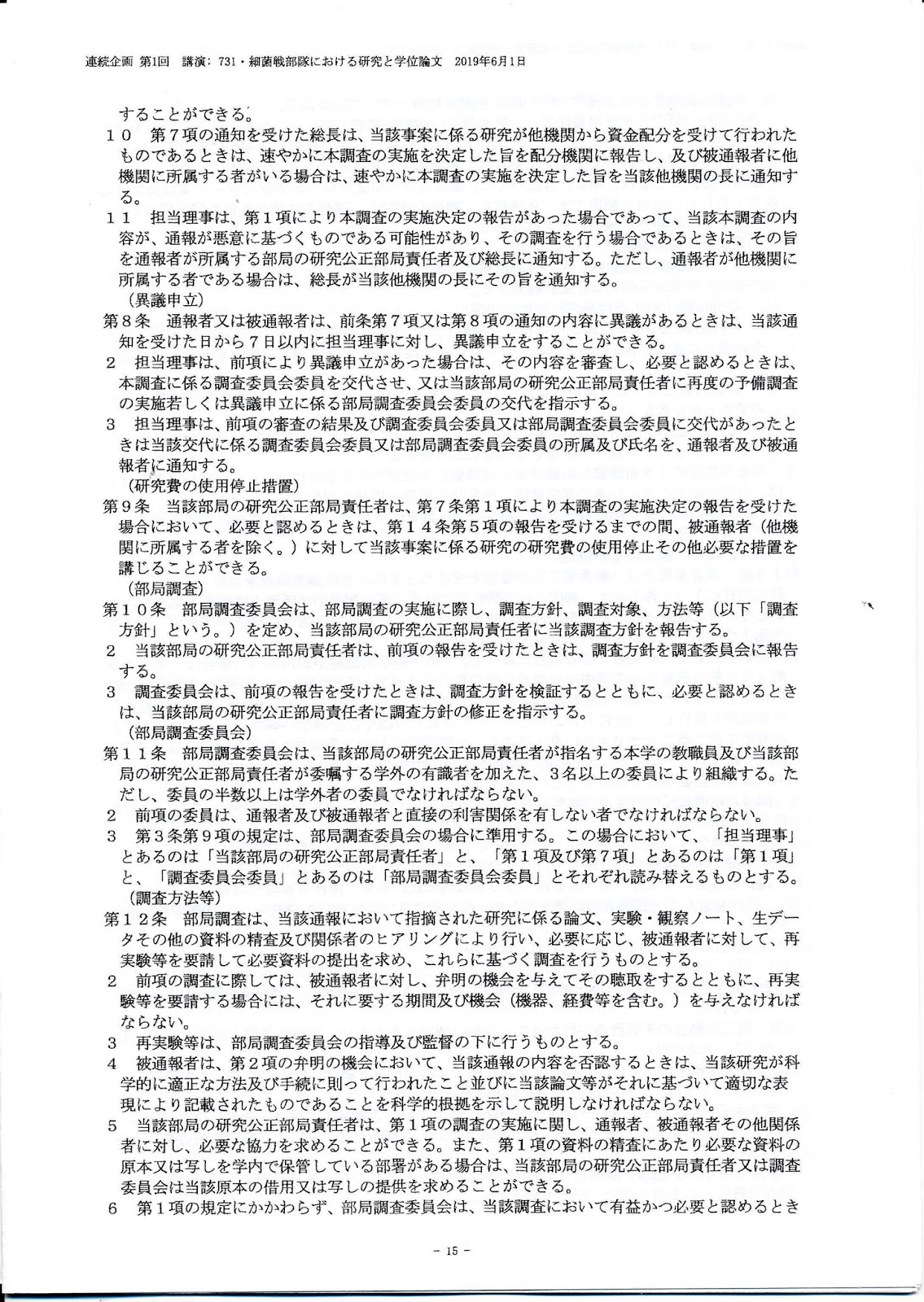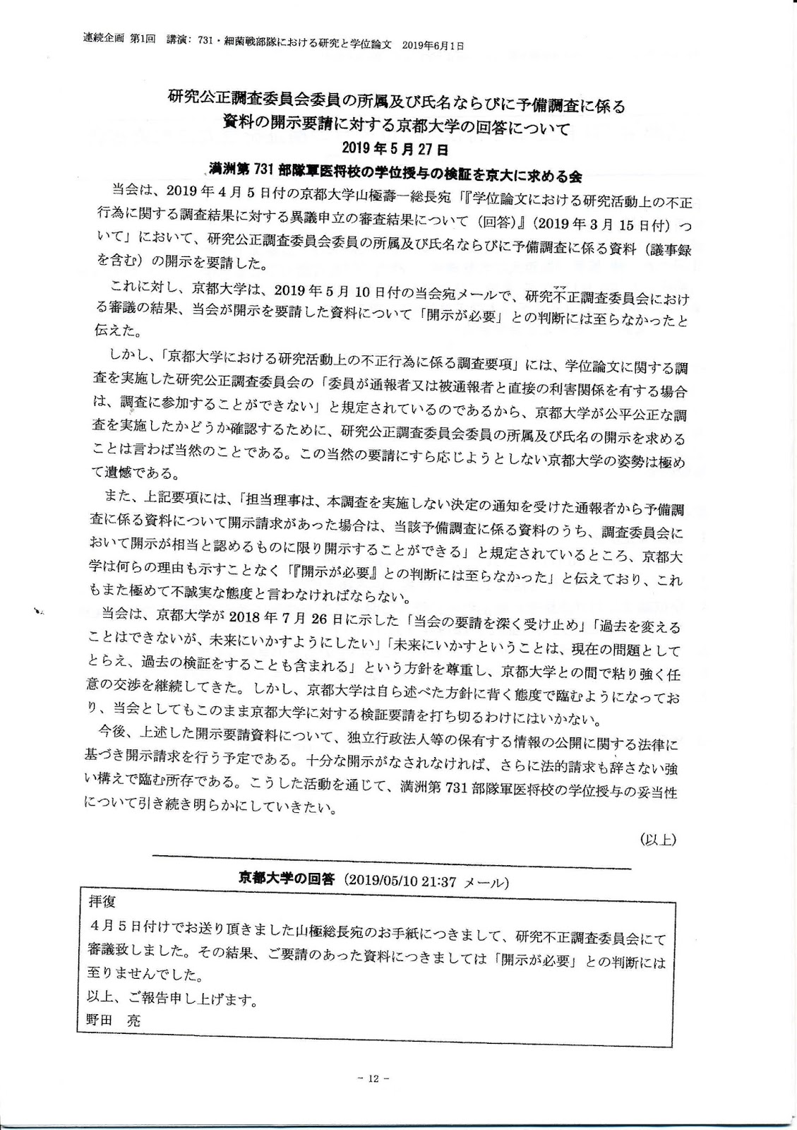 情報公開裁判 『衛生学校記事』&『化学学校記事』2019年6月11日